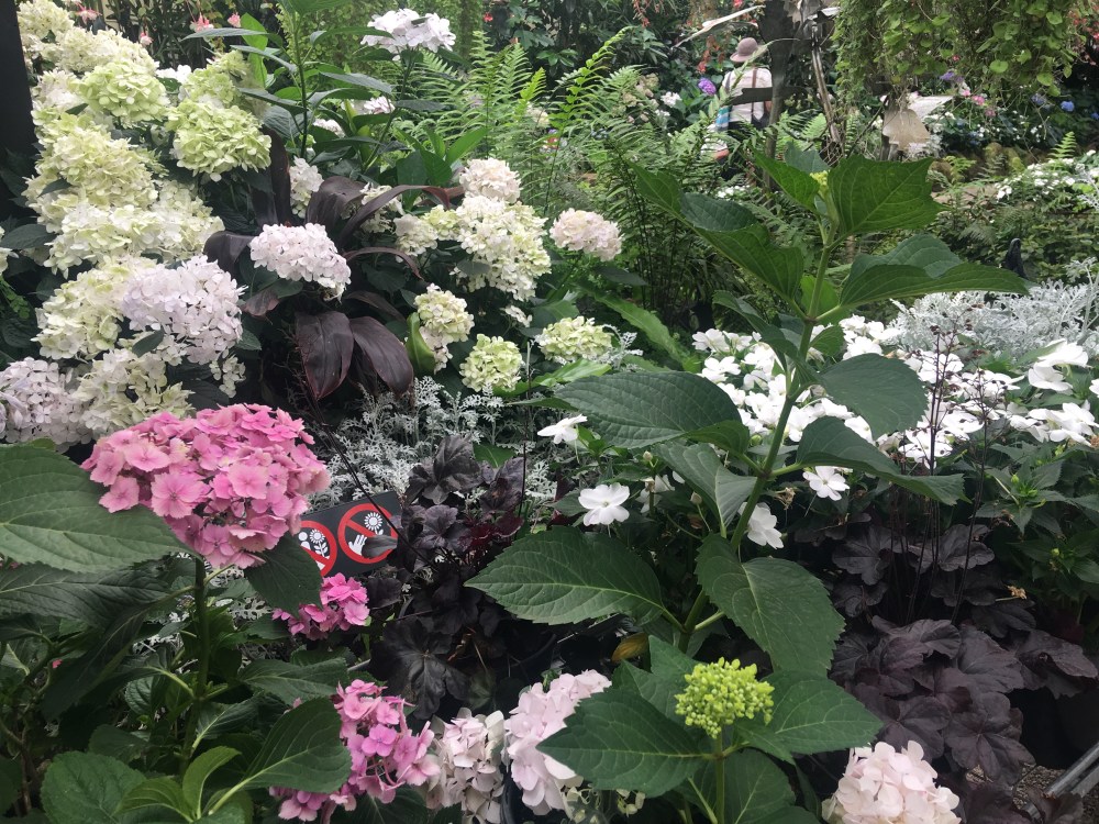 I’m no no botanist, so except for the hydrangeas and white blooms labelled ‘impatiens’ I’m not entirely sure what these flowers or plants are called. But do drop me a line if you recognise any of it.