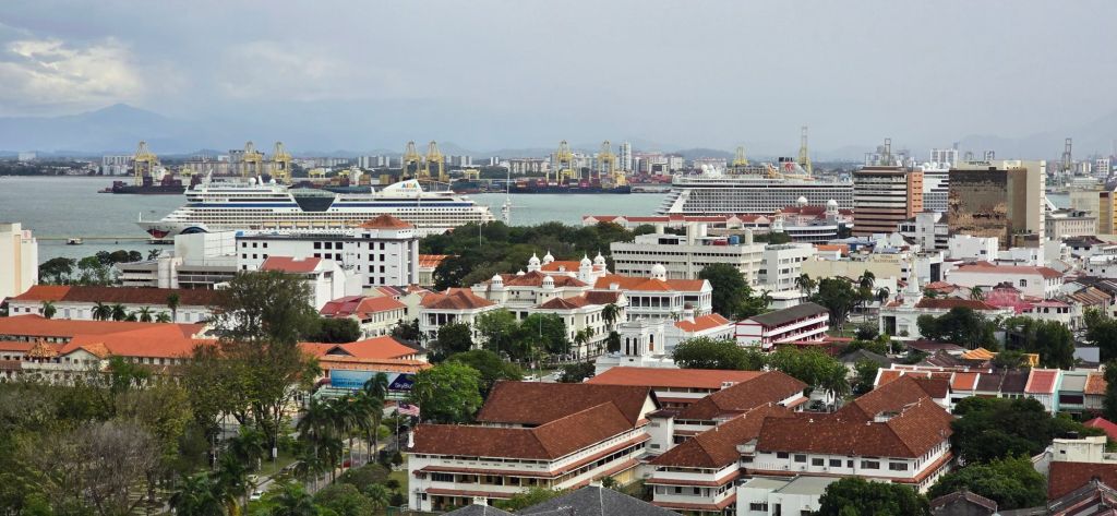 The old quarter of town is visible right up to Swettenham pier, where two cruse ships are docked for the day.